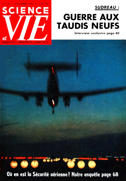 décembre 1961 – 164 pages• Nos lecteurs nous écrivent Actualités • Le monde en marche Magazine • Guerre aux taudis neufs • Ces animaux qui calculent • Les « poids-plume » de l’air • Planning familial à Paris • 200 km/h sur rails à roulettes • Sécurité aérienne : 99,9999992 % • Le bassin de la folie • La guerre route-rail est déclarée • Le sel, cet inconnu • Une seconde de retard pour 3 000 ans • Cinémathèque : 150 000 km de film • Les consommateurs-robots • Plongeon dans le ciel • 1 200 diagnostics par jour La technique à votre service • 6 millions de cyclomoteurs • Une machine à écrire révolutionnaire • Photo : tous les obturateurs • Auto : deux équipements de sécurité • Le panorama du chauffage électrique • Les disques • Les livres