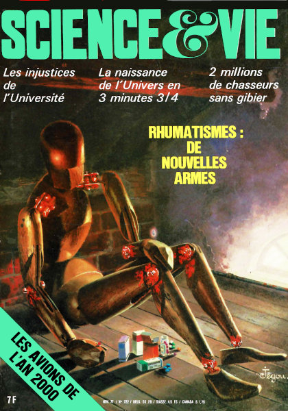 novembre 1977 – 196 pagesSAVOIR • L’Université malade de la sélection • Où va la lutte contre les rhumatismes • Leucémie : on a fabriqué une cellule productrice de virus • L’Univers est né en 3 minutes 3/4 • Adieu quark, bonjour parton • Il n’y a plus de paradoxe de Langevin • Un génie précurseur de l’informatique, Ada Byron • Les baobabs vérifient la dérive des continents • Faut-il interdire la chasse ? • Chroniques de la recherche POUVOIR • La propagande électro-nucléaire • Contrôle atomique mondial : encore impossible • Les réserves de pétrole sont plus grandes qu’on ne le dit • L’alcool de sucre remplace l’essence au Brésil • Les vide-ordures, des ramasse-germes • Poissons élevés en cycle fermé avec des gélules • La photogrammétrie au secrours des édifices d’art • Les vraies causes de la pollution automobile • L’avion de l’an 2000 : I – Vers l’avion cybernétique • Chroniques de l’industrie UTILISER • La vérité sur le cinéma en Polaroïd • 7 chaussures de ski au banc d’essais • Hi-Fi : les nouvelles normes AFNOR • Jeux et paradoxes : Les nombres adoptent le treillis • Les échecs • Jeux de société : « Thoughwave » au banc d’essais • Jeux et informatique : Le « jeu des pièces de 10 F » était un déguisement du « jeu de Marienbad » • Physique amusante : Vérifiez la nature ondulatoire de la lumière • Go : Partie commentée (7 pierres de handicap) • Les livres du mois • Chroniques de la vie pratique |