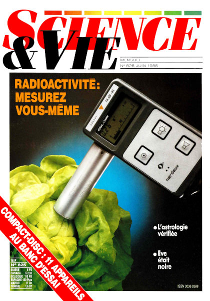 juin 1986 – 172 pagesSAVOIR • Forum • Tchernobyl : les réponses aux 11 questions que tout le monde se pose • Satellite : le témoin no 1 • La Voie Lactée a des problèmes de cœur • L’hypothèse extraterrestre • L’astrologie mesurée par le physicien • Ève était noire • Évolution : la troisième voie • Le gène des maladies coronaires • Le téléphone secret des éléphants • Échos de la recherche POUVOIR • Tripoli : le raid au radar • Échos de l’industrie UTILISER • Des fausses dents qui tiennent mieux que les vraies • 11 lecteurs de disques à laser au banc d’essai • La télévision numérique arrive • Les risques des cartes d’identité infalsifiables • Le journal de l’astronome : Repérer les planètes grâce à la Lune • Informatique amusante : Dessinez vos sons • Physique amusante : Mouler le vivant • Le micro de l’ingénieur : Le Pert-Cost • Électronique amusante : Votre ligne est-elle libre ? • Informatique pratique : Un cardiographe informatisé • Les livres du mois • Échos de la vie pratique • Les objets du mois |