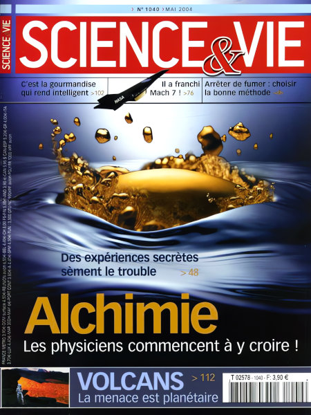 mai 2004 – 172 pages• Avant-propos : Dissiper les brumes ACTUALITÉS • RECHERCHE : • Le génome du rat vient d’être déchiffré • Le mystère des spirales martiennes enfin éclairci • Paris expose la préhistoire chinoise • Une lentille liquide pour la photo • SANTÉ & MÉDECINE : • La France ne vaccinera pas tout le monde contre la varicelle • On va traiter les allergies à la carte ! • ENVIRONNEMENT & CADRE DE VIE : • 3 000 km de fibres vont surveiller le Pacifique Nord • Voici peut-être l’arme fatale contre les légionelles DÉCODAGE • [À LA UNE] : Alchimie : Transmuter le plomb en or, l’hydrogène en hélium… • EN PROGRÈS • Premières galaxies : la plongée historique • Le miracle du « ver du pêcheur » • Il a franchi Mach 7 ! • Le pont au-dessus des séismes • EN PRATIQUE • Toutes les méthodes pour arrêter de fumer ne se valent pas • CASSE-TÊTE • Et si l’homme était devenu intelligent par gourmandise ? • Extinction des dinosaures : la polémique REPÈRES • Le point sur… Les volcans – Contexte : Un défi toujours crucial – Faits & Chiffres : 1 500 sites sont aujourd’hui actifs – Mécanismes : Ainsi s’évacue la chaleur de la Terre – Impact climatique : Quand les éruptions jettent le froid – Prévisions : Tout commence par des signes avant-coureurs – Prévention : Un seul objectif, sauver les gens • QUESTIONS-RÉPONSES • Comment la clé fait-elle tenir la voûte ? • Peut-on cloner l’homme de Neandertal ? • Le ciel du mois • COMMENT ÇA MARCHE : La voiture hybride • ILS L’ONT FAIT • Le couteau suisse avec clé USB • Le rétroviseur qui élimine les angles morts • L’urinoir sans chasse d’eau – Un écran LCD recto verso • Le stylo grossissant… • IL Y A… 75 ans EXPLORATION • La cité oubliée aux sépultures géantes |