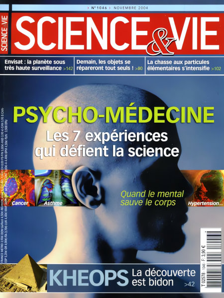 novembre 2004 – 164 pages• Avant-propos : L’esprit de la science ACTUALITÉS • RECHERCHE : • Le microscope électronique bat désormais tous les records • Les premiers Américains venaient d’Australie • SANTÉ & MÉDECINE : • Greffer des cellules de la joue sur la cornée redonne la vue • La démence guette les obèses • L’ablation des amygdales est trop systématique • ENVIRONNEMENT & CADRE DE VIE : • Les espèces menacées sont plus nombreuses que prévu • Nous ne serons que 9 milliards en 2050 • POLÉMIQUE : Kheops : une découverte bidon DÉCODAGE • [À LA UNE] : Psycho-médecine • EN PROGRÈS • Une exoplanète aurait été prise en photo ! • Vers des objets qui… s’autoréparent • T. Rex : son gigantisme est élucidé • EN PRATIQUE : Alerte aux carottes géantes • CASSE-TÊTE : Extraterrestres : mais que leur dire ? REPÈRES • Le point sur… Les particules élémentaires – Contexte : Une folle quête – Faits & chiffres : On recense à ce jour 38 particules élémentaires – Histoire : Un fantasme scientifique vieux de 24 siècles – Méthodes : Un défi théorique et expérimental – Applications : Des retombées dans de multiples domaines – Recherche : Un puzzle encore incomplet – Perspectives : Vers une nouvelle théorie • QUESTIONS-RÉPONSES • Comment les lentilles corrigent-elles à la fois de loin et de près ? • Pourquoi a-t-on des courbatures ? • Les poissons dorment-ils ? • Le ciel du mois • COMMENT ÇA MARCHE : Le spectromètre de masse • ILS L’ONT FAIT : • L’instrument à cordes insonorisé • Des maisons amphibies • la batterie rechargeable sans baisse de régime • L’ordinateur tout-design • IL Y A… 55 ans EXPLORATION • Envisat : ses 900 jours d’images choc |