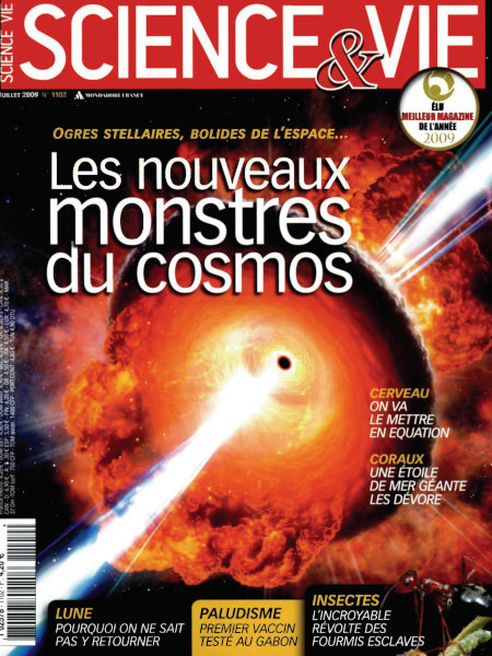 juillet 2009 – 148 pages• Avant-propos : Laboratoire à ciel ouvert • FORUM : Réactions, critiques, remarques… nos lecteurs prennent la plume • ILS L’ONT FAIT : Retour en image sur les derniers événements scientifiques ACTUALITÉS • EN DIRECT DES LABOS : Le bébé « bilingue » réagit plus vite à l’imprévu – Le dauphin peut rester vigilant 5 jours durant – En tombant, les gouttes d’eau s’écrasent… dans l’air – etc. • L’EXPLOIT : Ils auraient trouvé l’ancêtre des singes • PLANÈTE TERRE : • ENVIRONNEMENT : La pollution de l’air favorise la photosynthèse – Les limites du vivant ont été repoussées – etc. • MÉDECINE : Le virus de la grippe aviaire craint le froid – Rêver les yeux ouverts stimule le cerveau – etc. • TECHNOS : Le béton souple arrive – La première moto volante se prépare à décoller – etc. À LA UNE : Monstres cosmiques VIE D’AUJOURD’HUI • PALUDISME : Au Gabon, notre envoyée spéciale a suivi la phase ultime des tests du premier vaccin andipaludisme • RETOUR SUR LA LUNE : 40 ans après Apollo 11, le nouveau programme lunaire américain peine à réitérer l’exploit • GRAPHÈNE : Doté de propriétés exceptionnelles, ce nouveau matériau attise les convoitises de multiples secteurs industriels • CORAUX : Dans les eaux du Pacifique, une étoile de mer géante dévore les récifs de corail, déjà fragilisés FONDAMENTAL • CERVEAU : Le voici tout près d’être mis en équation • EFFET CASIMIR : La force du vide a pu être inversée ! • SUCRE : Il remet en cause la théorie de l’addiction • L’incroyable révolte des fourmis esclaves EN PRATIQUE • Q & R : Pourquoi les allergies alimentaires sont-elles en hausse ? – La médecine fait-elle dégénérer l’espèce humaine – Quelle est l’origine des jet-streams ? – etc. • LE POINT SUR… les antennes-relais • TECHNOFOLIES : Le premier téléviseur au format salle de cinéma – La voiture qui détecte les risques de collision – Des verres toujours nets – etc. • À LIRE / À VOIR / .NET : Tout sur les livres, expositions, films, sites web, etc., de l’actualité des sciences. Et toujours « le Ciel du mois » • NOS 3 QUESTIONS À… Joseph Sifakis |