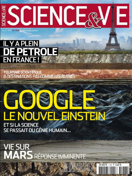 juillet 2012 – 144 pages• Avant-propos : Eurêk@ ? • FORUM ACTUS • Labos : L’astéroïde Vesta est une planète inachevée – Le tore plat n’a plus de secret – etc. • ON EN REPARLE : Lune : aucun scénario ne tient plus • Terre : La méduse n’est pas si invasive – Du méthane s’échappe de l’océan Arctique – etc. • ON TENAIT À VOUS LE DIRE : Y a-t-il encore quelqu’un pour veiller sur la planète ? • Médecine : Les « néo-neurones » dopent les capacités du cerveau – etc. • FOCUS : Appendicite : l’opération ne sera plus systématique • Technos : Le bateau solaire a relevé le défi – M13, le virus qui produit de l’électricité – etc. • IDÉE NEUVE : « J’imagine communiquer au moyen de neutrinos » • LES CLÉS POUR COMPRENDRE : Éolien offshore : pourquoi la France s’y met maintenant FONDAMENTAL • À LA UNE : Google, le nouvel Einstein • FEUILLETON : Vie sur Mars : épisode ultime ? • ÉVÈNEMENT : Pétrole : le sous-sol français en regorge ! • EXPLOIT : Le dernier réchauffement reconstitué • DÉCOUVERTE : Vents mauvais : ils sèment des maladies par-delà les océans ! • AVANT-PREMIÈRE : « J’ai trouvé l’arbre généalogique des galaxies » • CASSE-TÊTE : Prion : pour le pire… et le meilleur • LE POINT SUR… La carte d’identité a 100 ans… Biométrie : quel risque ? EN PRATIQUE • BON À SAVOIR • ZOOM DU MOIS : Tourisme scientifique : notre sélection pour l’été • QUESTIONS / RÉPONSES : Pourquoi les requins se sont-ils mis à attaquer l’homme ? – Qu’est-ce qui fait qu’un matériau sera dur ou mou ? – Est-ce que l’hymen sert à quelque chose ? – Comment le freesbee peut-il voler ? – N’est-il pas étrange de voir si bien sous l’eau avec un masque ? – Pourquoi se met-on à crier quand on a mal ? • TECHNOFOLIES : La première berline avec airbag piéton – Un reflex pour tutoyer les étoiles – L’ordinateur qui veille à votre confort – La première planche de surf pliable et gonflable ! – La plaque à induction de table – etc. • LE CIEL DU MOIS • Contre-sommaire |