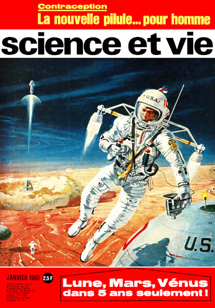 janvier 1965 – 164 pages• Courrier des lecteurs • Il y a 50 ans dans La Science et la Vie • Science-Flash • Vers une civilisation de la contraception • Dans l’infiniment petit des molécules géantes • Ces bâtisseurs de « gratte-ciel » : les termites • Huit ans après la bombe H, la vie reprend à Bikini • Mensa, une internationale de l’intelligence • Le navigateur à inertie sait faire le point sans le secours de personne • La conquête de l’espace • Ce hamster respire sous l’eau • Comment vivrons-nous en 1985 ? • Jeux et paradoxes : De l’autre côté du miroir • Qui équipera l’Europe en centrales nucléaires ? • Le plus grand pont du monde • Gare aux animaux : ils colportent plus de cent maladies • Un hélicoptère mû par l’énergie sans fil • Une expérience d’antigravitation • Lyophilisation : des fraises fraîches toute l’année • Les mystères du lac Moghilny • Espionnage d’opinion à la TV • Banc d’essai : Il est possible de multiplier par dix la rapidité d’un film… • Banc d’essai : Pour ou contre le chargement automatique • Les livres du mois