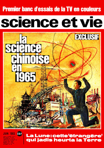 juin 1965 – 180 pages• Courrier des lecteurs • Il y a 50 ans dans La Science et la Vie • Science-Flash • Éditorial : Salut, la jeunesse ! • Des gaz et des microbes… pour adoucir les mœurs • Early Bird, messager du ciel • 40 000 F pour gagner l’immortalité • La Lune, cette étrangère qui heurta notre Terre • Un nouvel enseignement des maths • Un enfant ressuscité avant de naître • Pourquoi le Ve plan ? • L’or des chirurgiens • Premier banc d’essais des 3 systèmes de TV couleurs • Les ondes de choc des météorites • Qu’y a-t-il derrière la science chinoise ? • À Saclay, le « suicide » d’un proton • Jeux et paradoxes : Comment gagner au « Jeu de Marienbad » • La ménopause est-elle un mythe ? • Ordinateurs à tout faire • Pissevin, la ville aux 50 000 piétons • L’avion de « monsieur tout-le-monde » • Banc d’essais : le magnétophone « Revox » • Claude Bernard, le triomphe de l’expérience • Les livres du mois