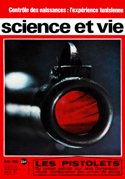 mars 1966 – 164 pages• Courrier des lecteurs • Il y a 50 ans dans La Science et la Vie • Science-Flash • Éditorial : Nous sommes tous les actionnaires de la Recherche • Contraception : après la pilule, le vaccin • Les hôtels suspendus de l’architecte Albert • Cette année, peut-être le mur du son sur roues • L’énigme que pose la migration des oiseaux • Du roman policier aux Jeux Olympiques : les armes de poing • Le Perceptron, cerveau électronique calqué sur le cerveau humain • Cosmostratégie : quel est l’enjeu de la course aux mégatonnes ? • Géant de 6 mètres, le « Pedibulator » multiplie la force musculaire de l’homme • L’oxygène sous pression, thérapeutique d’avenir pour les accidents cardiaques • La clinique « anti-tabac » des environs de Londres • La fin du bombardier lourd • Banc d’essais : les électrophones les plus chers ne sont pas toujours les meilleurs • Jeux et paradoxes : Pic et pic et colégramme • Les Curie, trois prix Nobel sous un hangar • Les livres du mois
