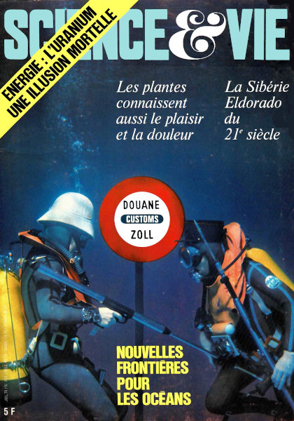 juillet 1974 – 164 pagesSAVOIR • Les bombes A du tiers-monde • L’insolent défi de l’uranium • L’hormone du diabète • La vie émotive des plantes • La langouste n’a plus de mystère pour les physiologues • On a isolé la protéine du sommeil • Les sites archéologiques révélés à l’infrarouge • « L’envolée de plaisance », ère nouvelle du parachutisme • La bactérie du fumier, alliée des cancérologues • Le bocage menacé par les bulldozers • Chroniques de la recherche POUVOIR • Les richesses de la mer : à qui doivent-elles appartenir ? • Le prix de la nourriture en énergie • Sibérie, Eldorado du XXIe siècle • Chez Peugeot, des voitures sans essence • Le plus puissant ordinateur du monde • Chroniques de l’industrie UTILISER • Tous les moteurs hors-bord • Le ski sur gazon à la conquête des Alpes • Jeux et paradoxes : Des casse-tête encore plus chinois • Chronique des échecs • Les livres du mois • Référendum photo : Et si c’était vous qui décidiez de la conception des appareils ? • Chroniques de la vie pratique