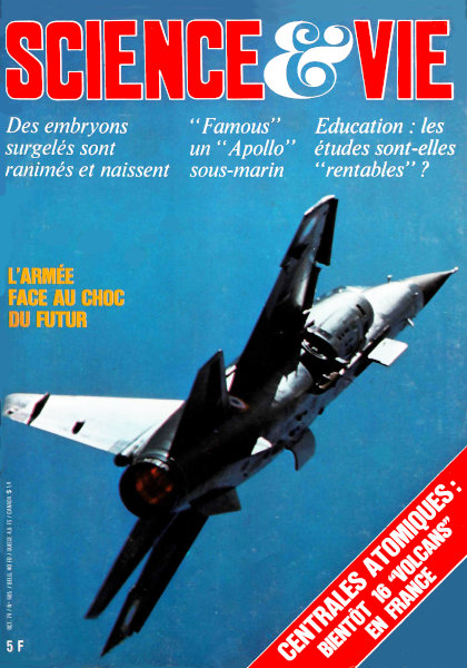 octobre 1974 – 180 pagesSAVOIR • Centrales atomiques : un rebondissement • Stop à la génétique ? • Des tremblements d’étoiles enrichissent la physique • Des cellules d’une femme morte bouleversent la biologie • Comment la prison modifie l’organisme • Embryons surgelés : de la théorie à la réalité • Après 40 ans de dictature, Lyssenko est détrôné : le tournant de la génétique soviétique • La magnétohydrodynamique : succès soviétique et unique • Un « Apollo » sous-marin franco-américain : Famous • On peut écrire l’Histoire avec les facteurs sanguins • Gergovie la gauloise retrouvée par un chercheur solitaire • Chroniques de la recherche POUVOIR • Morale et stratégie : la crise de l’armée • La crise de l’automobile : bénéfique pour son évolution • 50 000 heures de télé par vie de Français • Le rendement de l’éducation en France : un dossier décevant • Chroniques de l’industrie UTILISER • Petit guide du maquis de la Hi-Fi • Les échecs • Jeux et paradoxes : Magie et toro-magie • Les livres du mois • Chroniques de la vie pratique