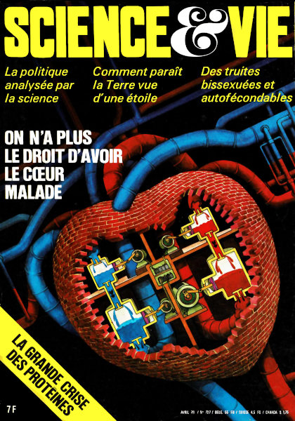 avril 1978 – 172 pagesSAVOIR • Quand l’ordinateur fait de l’analyse politique • Prévision des tremblements de terre : les animaux mobilisés • Avrilologie : La troublante énigme du triangle des Bouches-du-Rhône • Comment paraîtrait la Terre vue d’une étoile • Sociologie des thèmes de science-fiction • Les bizarres nuages d’Io • On n’a plus le droit d’avoir le cœur malade • L’homme qui sauva 20 000 bêtes • Des truites bissexuées et autofécondables • Chroniques de la recherche POUVOIR • Plus grave que celle du pétrole : la crise des protéines • On a commencé la récolte des nodules de manganèse • Contre l’espionnage : un réseau informatique • La cybernétisation de l’industrie japonaise • L’avion de l’an 2000 : VI – Des avions pour qui ? Et pour quoi ? • Le mercure clandestin • La forêt française ne doit pas servir qu’à faire des poteaux • Aliments pour bébés : pourquoi la France ne suit pas • Chroniques de l’industrie UTILISER • Les nouveaux procédés de photo en relief • Hi-Fi : comment choisir un tuner • La Renault 14 : la poire « épluchée » • Et voici l’ordinateur de la famille • Jeux et informatique : Pas besoin de calculette « scientifique » • Les échecs • Jeux de réflexion : « Memory » et « Spingo » au banc d’essais • Physique amusante : Mesurons l’électricité statique • Jeux et paradoxes : Des cubes, des cubes… • Go : Championnat d’Europe 1976 (suite et fin) • Les livres du mois • Chroniques de la vie pratique |
