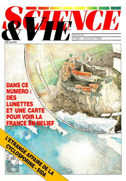 janvier 1986 – 164 pagesSAVOIR • Chercheur cherche emploi stable • Uranus, enfin vu de près • Les galaxies rouges • Les physiciens découvrent la ficelle • Neurologie : les trois premières années de la vie • La troublante affaire cyclosporine-sida • Espionnage chez les microbes • Sois maigre et tais-toi ! • Échos de la recherche POUVOIR • Des fissures dans les avions, est-ce possible ? • France-Angleterre : le pont le plus cher du monde • Dossier : Spot va vendre la France en 3 dimensions • Le kiwi conquiert nos vergers • Échos de l’industrie UTILISER • Micro-informatique : Candide et le simulateur de vol • La copie couleur géante • Physique amusante : Le miroir trirectangle ou cataphote • Le micro de l’ingénieur : La méthode de Bairstow • Go initiation : L’approche du coin en « ogeima » • Électronique amusante : Un adaptateur péritel pour Amstrad • Informatique amusante : Un jeu d’arcades : « Fernando » • Jeux et paradoxes : Les sauts du deux-quatre • Go : La corde raide finit par craquer • Les livres du mois • Échos de la vie pratique