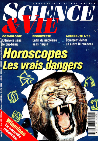 janvier 1994 – 160 pages• L’évènement du mois : L’émotion à propos du clonage d’humains • Forum • Échos de la recherche • Échos de l’environnement • COSMOLOGIE : L’Univers sans le big-bang • PHYSIQUE : Quark : le jeu est complet • SISMOLOGIE : Ils font trembler la Terre sur écran • PHYSIQUE : La carte mondiale de la pesanteur • PSYCHOPATHOLOGIE : Horoscopes : les vrais dangers • ÉNERGIE : Enfin du nucléaire sans risque • NUCLÉAIRE : Tchernobyl… le pire est à venir • ESPACE : Une tour de Babel en orbite • CHRONOBIOLOGIE : Horloge biologique : on a trouvé le ressort • SANTÉ : Vitamines : la nouvelle médecine • ARCHÉOLOGIE : Bateaux momifiés • TRANSPORT : La Suisse en métro à 500 km/h • SÉCURITÉ ROUTIÈRE : Camions contre autos • BUREAUTIQUE : Newton reconnaît l’écriture de son maître • OPTIQUE : Un ordinateur dans les jumelles • Carrefour de l’innovation • Comment ça marche : La lumière électrique • Électronique amusante : Un détecteur optique de présence • Informatique amusante : Jouons avec un satellite • Biologie amusante : Et la lumière fut… • Le journal de l’astronome : Les rendez-vous du ciel en 1994 • Échecs & maths : La prise du château royal & Phrases autoréférentes • Science & Vie pratique • Livres • Science & Vie il y a… |