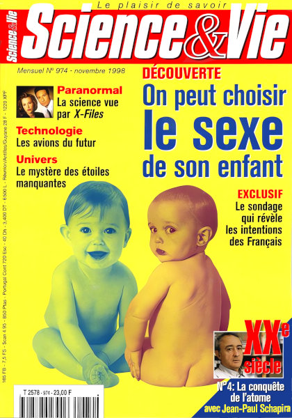 novembre 1998 – 196 pages• L’évènement : Choix du sexe : la science et le business • Forum ACTUALITÉ • Images du mois • Recherche • Environnement • Technologie • Médecine EN COUVERTURE • On peut choisir le sexe de son enfant • Sondage exclusif : les Français refusent • Un rêve vieux comme le monde SCIENCE • ASTROPHYSIQUE : Le crépuscule des étoiles • SPORT : Des muscles nourris au dopage • SOCIOLOGIE : Comment la ville modifie l’homme • PARANORMAL : X-Files : la science manipulée • REPORTAGE : Espéraza, la patrie des dinosaures • DOSSIER : À la recherche des mondes disparus – L’éruption qui renversa un empire – La fin des grandes cités – La fertilité du déluge • AÉRONAUTIQUE : Les avions du XXIe siècle • ÉQUIPEMENT : La montagne en toute sécurité PL@NET • Actualité du multimédia • Tous fichés ! • Internet • CD-Rom • Conso • Radio-Télé : la chaîne Internet SCIENCE-FICTION • Les mémoires de Centaure, porc transgénique CONSO • Actualité • Internet dans le four ! ENCYCLOPÉDIE XXE SIÈCLE • La conquête de l’atome – Ils ont volé le feu du soleil – L’énergie maîtrisée – JEAN-PAUL SCHAPIRA : « Le recyclage des déchets radioactifs est possible » LOISIRS • Le ciel du mois • Livres • RÉTRO : Il y a 40 ans |
