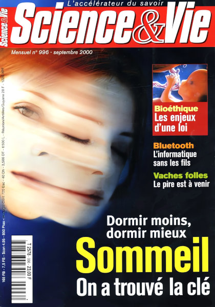 septembre 2000 – 172 pages• L’évènement : Concorde, le rêve fracassé • Forum ACTUALITÉ • Recherche • Environnement • Technologie • Médecine • EN COUVERTURE : On a trouvé la clé du sommeil – Ces neurones qui font dormir – À la recherche du sommeil idéal – L’art du bien dormir • ASTRONOMIE : Système solaire : la genèse selon Eros • PALÉONTOLOGIE : Australopithèques : cherchez l’ancêtre ! • MÉDECINE : Cancer, nouveaux espoirs • ENQUÊTE : Vaches folles : Le pire est à venir • ENVIRONNEMENT : De l’eau de pluie dans la maison • DOSSIER : Bioéthique, les enjeux d’une loi – Casse-tête législatif – Procréation assistée – Tests génétiques – Clonage et embryons – Dons d’organes – Brevets – Vers une bioéthique planétaire ? • ÉNERGIE : Du colza dans le téléphone • TECHNO : Les nouvelles prouesses des cristaux liquides • HISTOIRE : Pythéas, l’explorateur du bout du monde SCIENCE NET • Les dernières nouvelles des réseaux INTERNET • Sélection de sites éducatifs CONSO • Bluetooth : l’électronique nomade brise ses chaînes LOISIRS • Rétro • Le ciel du mois • CD-Rom • Livres |