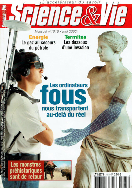 avril 2002 – 168 pages• L’évènement : Un « écologiste » dans l’espace • Forum ACTUALITÉ • Recherche • Environnement • Technologie • Médecine • EN COUVERTURE : Les ordinateurs fous nous transportent au-delà du réel. • ASTRONOMIE : Retour sur la lune • BIO-INFORMATIQUE : La cellule virtuelle est née • ENVIRONNEMENT : Invasion des termites : Où sont les chiffres ? • LOCALISATION : Galileo : le GPS européen sur le fil • DOSSIER : Le safari de la préhistoire • ÉNERGIE : Consommation électrique : record battu ! • SOCIO-ÉCONOMIE : « Soigner les pauvres pour développer l’économie » • INFORMATIQUE : L’ordinateur le plus puissant du monde • FOCUS : Le paludisme en questions • ÉNERGIE : Du gaz pour récupérer le maximum de pétrole • TECHNOLOGIE : Profession : designer de sons • AÉRONAUTIQUE : On achève bien les avions SCIENCE NET • La réalité virtuelle entre au tribunal INTERNET • Les ressources du vieillissement CONSO • Choisir son baladeur numérique MP3 LOISIRS • Le ciel du mois • CD-Rom • Livres • HISTOIRE : Léonard de Vinci : L’art de la science • RÉTRO : Il y a 70 ans |