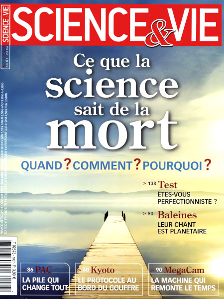 août 2006 – 196 pages• Avant-propos : Aux limites du vivant • FORUM : Réactions, critiques, remarques… nos lecteurs prennent la plume • ILS L’ONT FAIT : Retour en image sur les derniers événements scientifiques ACTUALITÉS • EN DIRECT DES LABOS : Une bulle de gaz géante a été découverte – Le serpent aurait un ancêtre terrestre – Le centre du sommeil de la mouche a été isolé – etc. • PLANÈTE TERRE : Le réchauffement fait avancer les déserts – L’origine du pétrole serait chimique, et non biologique – etc. • SANTÉ : Manger des légumes verts protège les yeux – La migraine n’affecte pas la libido – etc. • L’AGENDA DES SCIENCES : Tous les grands rendez-vous scientifiques du mois d’août • LES CLÉS POUR COMPRENDRE : Le protocole de Kyoto, censé réguler les émissions de gaz à effet de serre, s’essouffle À LA UNE : Ce que la science sait de la mort FONDAMENTAL • ÉTOILES DU HALO : Mais où est passé le lithium des plus vieilles étoiles de notre galaxie ? • BALEINES : La découverte est inédite : le chant de ces cétacés peut parcourir plusieurs dizaines de milliers de kilomètres ! • PILE À COMBUSTIBLE : Adieu, batteries de téléphones portables déchargées ! EXPLORATIONS • REPORTAGE : MegaCam, la machine à remonter le temps • RÉCIT : L’homme qui magnétise l’eau • ENQUÊTE : Toilettes publiques, l’injustice faite aux femmes EN PRATIQUE • À LIRE, À VOIR : Tout sur les livres, expositions, films, sites web, etc., de l’actualité des sciences. Et toujours « le Ciel du mois » • Q & R : Comment l’agriculture est-elle arrivée en Europe ? – Pourquoi avons-nous la chair de poule ? – Est-on relié à n’importe qui sur Terre via six personnes ? • LE POINT SUR… le télescope • TECHNOFOLIES : La chaîne de vélo qui ne déraille pas – La tente solaire… • TEST : Êtes-vous perfectionniste ? LE MONDE COMME VOUS NE L’AVEZ JAMAIS VU • Un monde à voir • Lignes : La ligne droite, la ligne brisée, le labyrinthe, l’arborescence, le méandre • Surfaces : La ride, l’hexagone, le réseau, la tache • Volumes : La sphère, la spirale, la crénelure, le rayonnement • Traqueurs de formes |