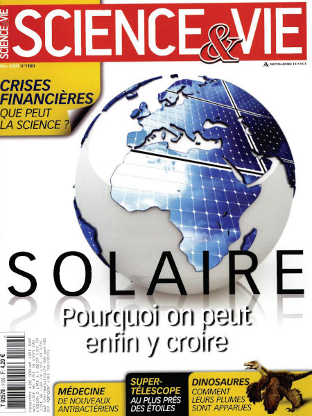 mai 2009 – 152 pages• Avant-propos : L’éclaircie • FORUM : Réactions, critiques, remarques… nos lecteurs prennent la plume • ILS L’ONT FAIT : Retour en image sur les derniers événements scientifiques ACTUALITÉS • EN DIRECT DES LABOS : Homo erectus avait déjà une démarche moderne – Pluton est couverte de méthane gelé – La couleur des yeux se « voit » dans six gènes – etc. • L’EXPLOIT : L’hélangiome a désormais un remède miracle • PLANÈTE TERRE : • ENVIRONNEMENT : Les sécheresses menacent le puits de carbone amazonien – Le tracteur à hydrogène – etc. • SANTÉ : Chez l’enfant, le diabète serait viral – Un mécanisme tumoral essentiel vient d’être élucidé – etc. • TECHNOS : Le plus grand voilier du monde sort des cartons – Un casque veut stimuler nos 5 sens – etc. À LA UNE : Énergie solaire VIE D’AUJOURD’HUI • CRISE FINANCIÈRE : Pourquoi aucun des modèles élaborés par des mathématiciens et des physiciens n’a-t-il su prédire la récente débâcle boursière ? • ANTIBIOTIQUES : Face à la résistance des bactéries aux antibiotiques, des solutions voient le jour • MONDE DU SILENCE : Dans les océans, bateaux et autres sonars sont à l’origine d’une pollution sonore dont souffrent cétacés et animaux marins • AUTOMOBILE : Récupérer l’énergie des gaz d’échappement est désormais possible FONDAMENTAL • SUPER-TÉLESCOPE : Le VLTI au plus près des étoiles • FEU : L’homme l’aurait domestiqué il y a 800 000 ans • SOMMEIL : Des cellules étoilées en sont la clé • On sait comment la plume vint aux dinosaures • MÉTÉORITES : Un laser dévoile leurs cratères EN PRATIQUE • Q & R : Trop de viande rouge accroît-il le risque de cancer colorectal ? – Pourquoi, à un certain âge, les enfants demandent-ils toujours « pourquoi » ? – Où le big bang a-t-il eu lieu ? Qu’est-ce qui fait parfois clignoter les néons ? – etc. • LE POINT SUR… l’IRM • TECHNOFOLIES : Échanger des fichiers d’un geste, sans PC – Des détergents nautiques « propres » – etc. • À LIRE / À VOIR / .NET : Tout sur les livres, expositions, films, sites web, etc., de l’actualité des sciences. Et toujours « le Ciel du mois » • NOS 3 QUESTIONS À… Jean-Pierre Bourguignon |