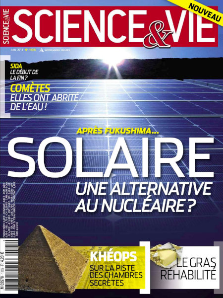 juin 2011 – 152 pages• Avant-propos : Le solaire au zénith • FORUM ACTUS • Labos : Les atomes cachent une cinquième symétrie – Certains primates ruminent – Un coït très ancien éclaire la guerre des sexes – etc. • ON EN REPARLE : Expérience de Miller : de nouvelles analyses confirment que la vie a pu naître sur Terre • ON TENAIT À VOUS LE DIRE : L’Oncle Sam n’est plus le parrain de la « Big Science » • Terre : Un milliard de citadins manqueront d’eau en 2050 – La mangrove est un super piège à carbone – Les tigres regagnent du terrain – etc. • LES CLÉS POUR COMPRENDRE : Pourquoi tant d’algues vertes encore cette année • Médecine : Une piste s’ouvre contre le cancer du pancréas – Le cerveau des autistes s’avère très organisé – etc. • IDÉE NEUVE : « Je pense soulager les douleurs fantômes grâce à l’anesthésie » • Technos : Une propriété miracle pour le graphène – Un plastique en plumes – etc. • FOCUS : Internet cherche adresses désespérément FONDAMENTAL • À LA UNE : Solaire : il pourrait remplacer le nucléaire • DÉBAT : Graisses : le retour en grâce ? • ENQUÊTE : Khéops : les nouvelles hypothèses • ÉVÈNEMENT : Navette spatiale : la fin d’un rêve des années 1980 • RÉCIT : Jeunesse éternelle : le protée réactive le mythe • DÉCOUVERTE : Comètes : elles ont abrité de l’eau liquide ! • LE POINT SUR… Depuis 30 ans : L’épidémie de sida EN PRATIQUE • BON À SAVOIR • ZOOM DU MOIS : Passer au photovoltaïque est-il encore rentable ? • QUESTIONS / RÉPONSES : Quel est précisément l’impact de la pollution de l’air sur notre santé ? – D’où viennent les éclairs qui surgissent des volcans ? – Pourquoi l’eau ne brûle-t-elle pas ? – Comment les saumons savent-ils où ils sont nés ? – Quel est le secret des effaceurs d’encre ? – Pourquoi reconnaissons-nous des formes dans les nuages ? • TECHNOFOLIES : L’appareil à viseur hybride – Le vélo électrique sans fil – L’aspirateur qui vide son sac – La voiture élastique – etc. • À FAIRE : Détecter des particules cosmiques… avec un aquarium • LE CIEL DU MOIS • Contre-sommaire |